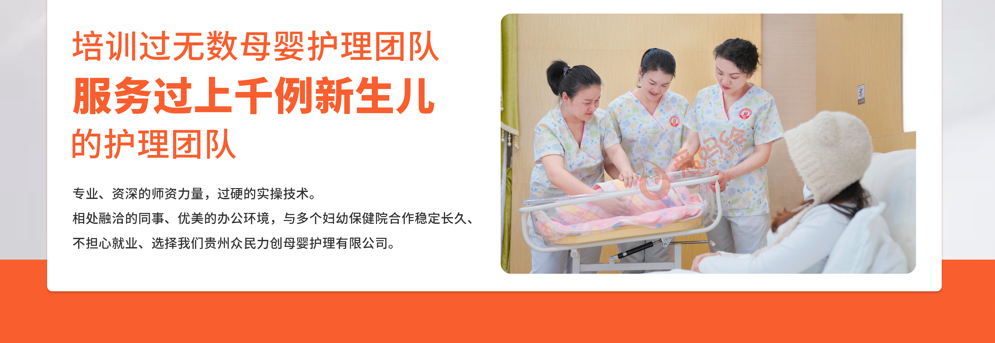 目前已为贵阳市妇幼保健院、毕节市妇幼保健院等单位和多个月子中心输送月嫂、育婴师、催乳师、